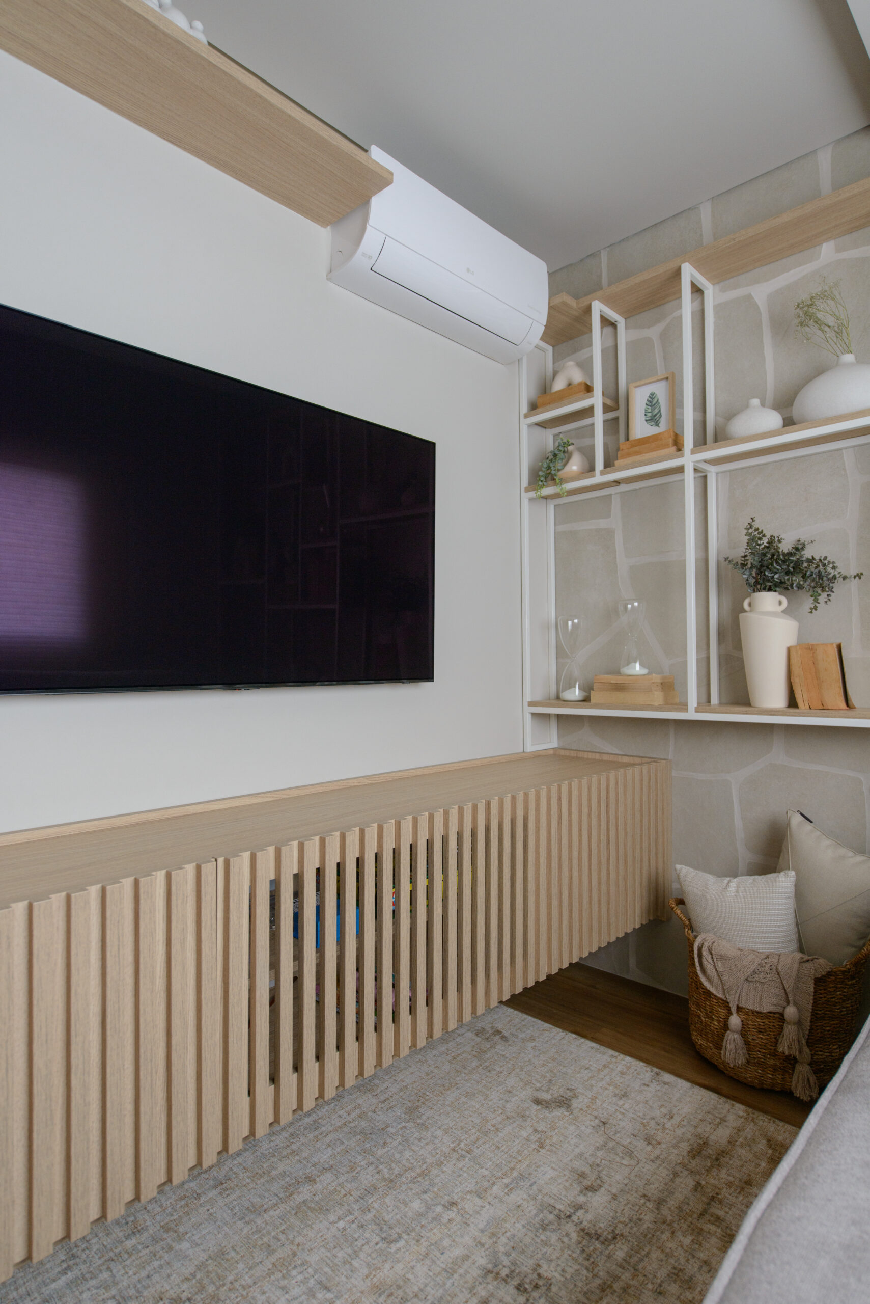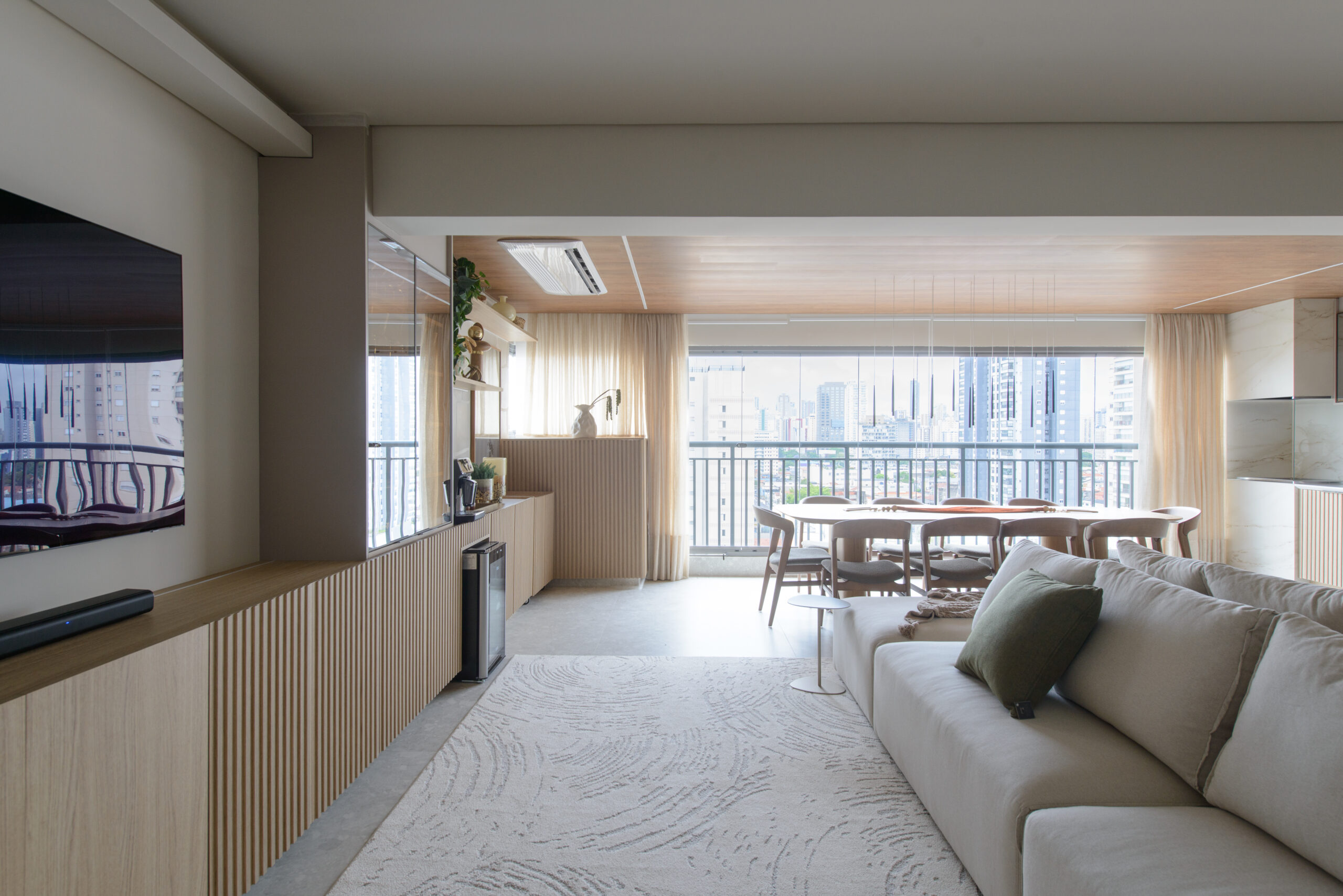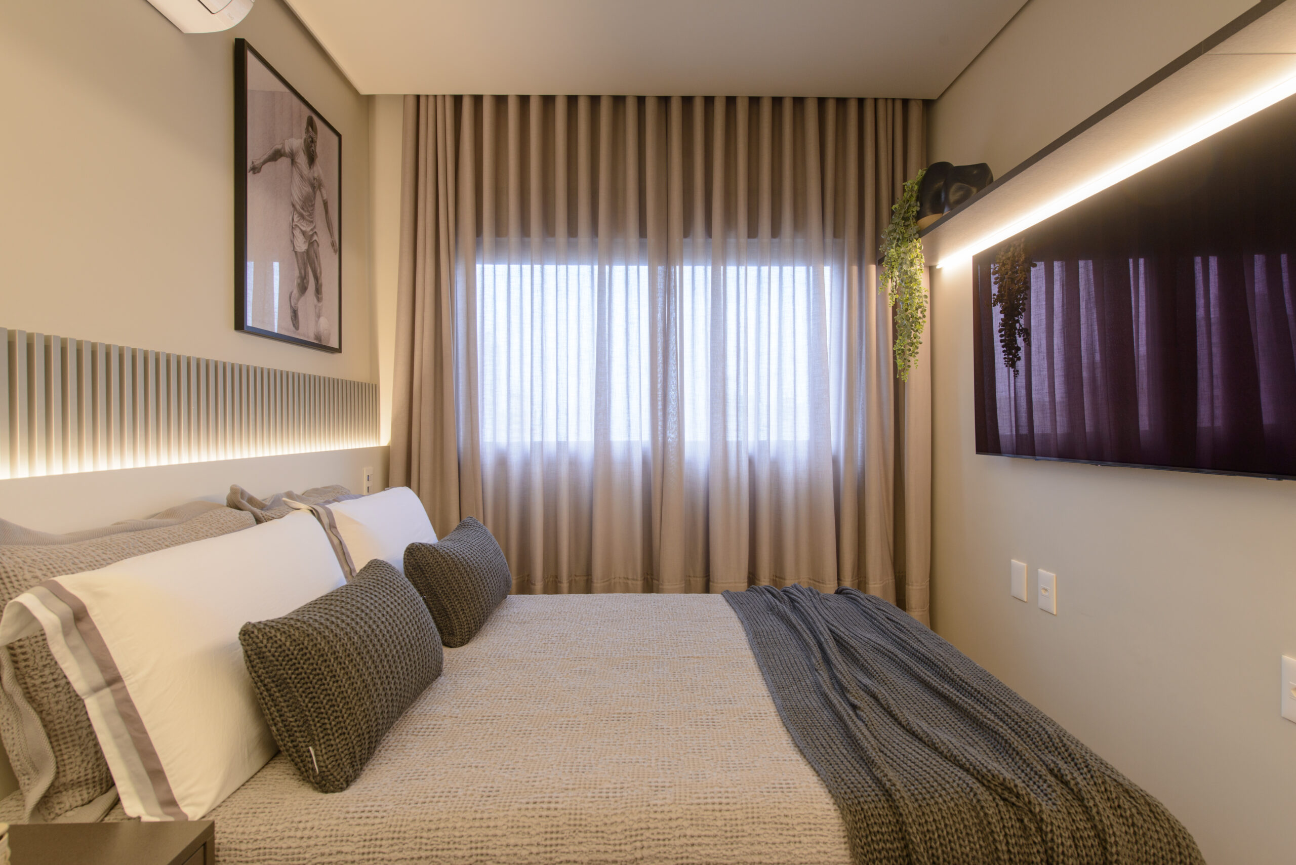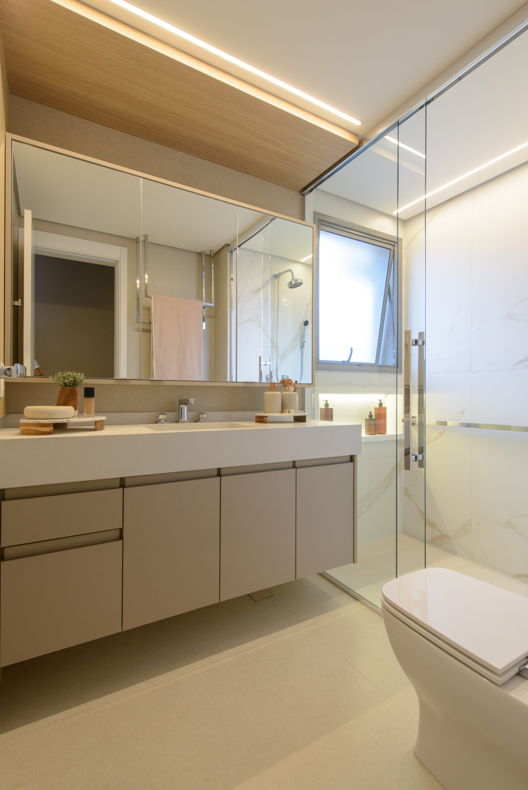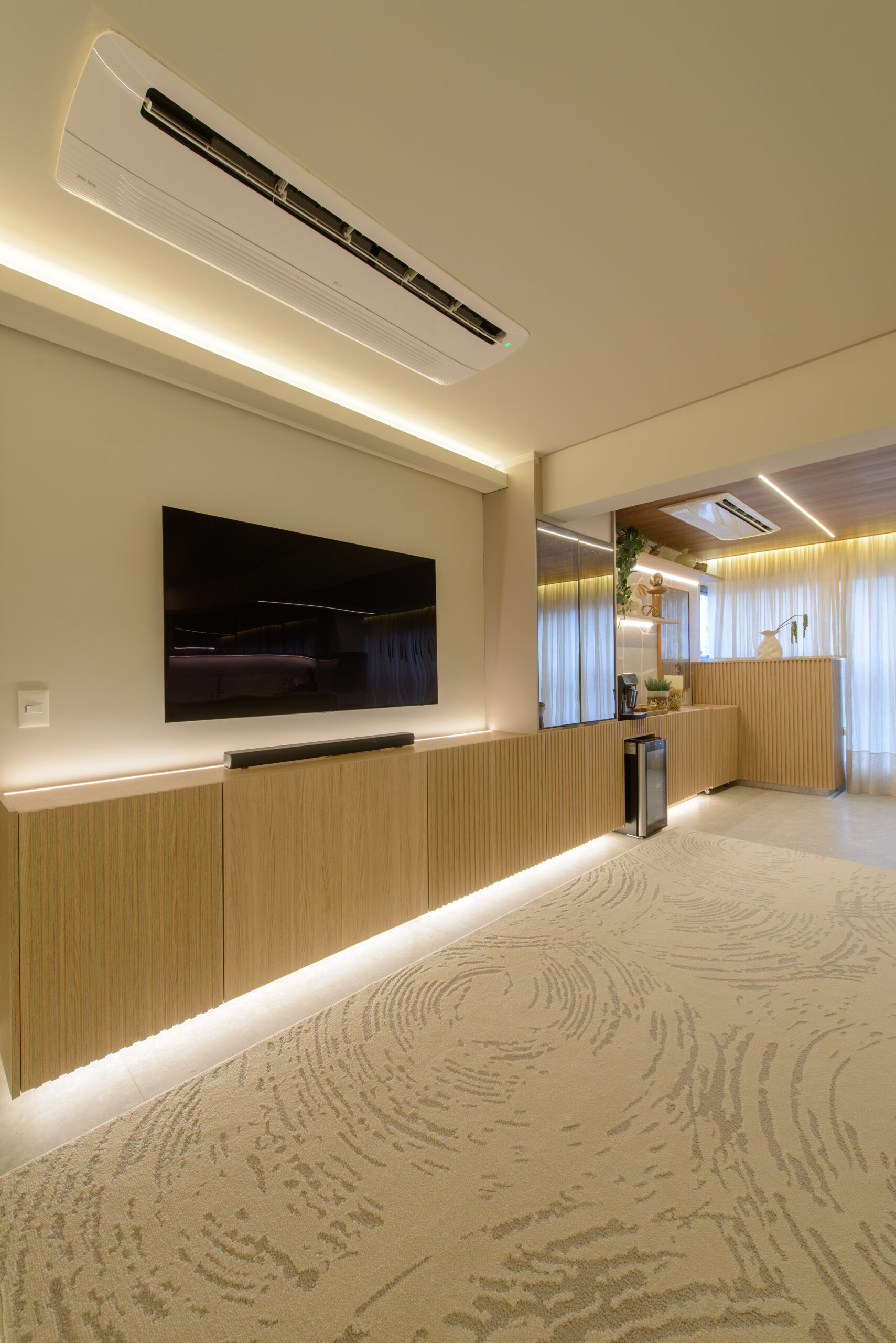 O projeto HL Tatuapé foi cuidadosamente planejado para atender às necessidades específicas de um casal de idosos, visando ser sua última moradia. Com foco em segurança e acessibilidade futura, foram implementadas soluções como iluminação indireta e balizada nos corredores, mobiliário sem quinas para evitar acidentes, e armários de fácil acesso na parte inferior.